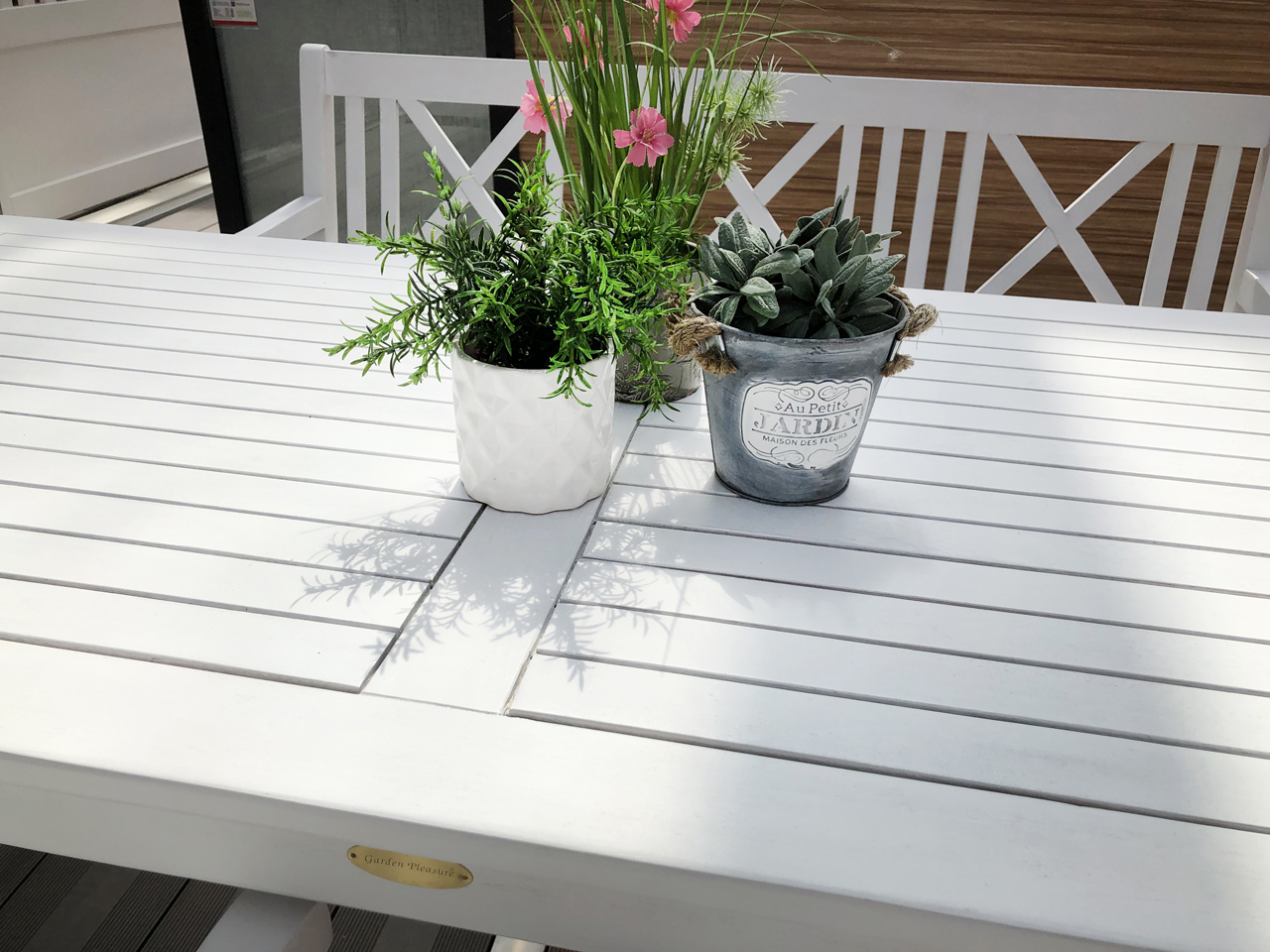 Gartentisch MALMÖ – skandinavischer Eukalyptus-Tisch im White-washed Look