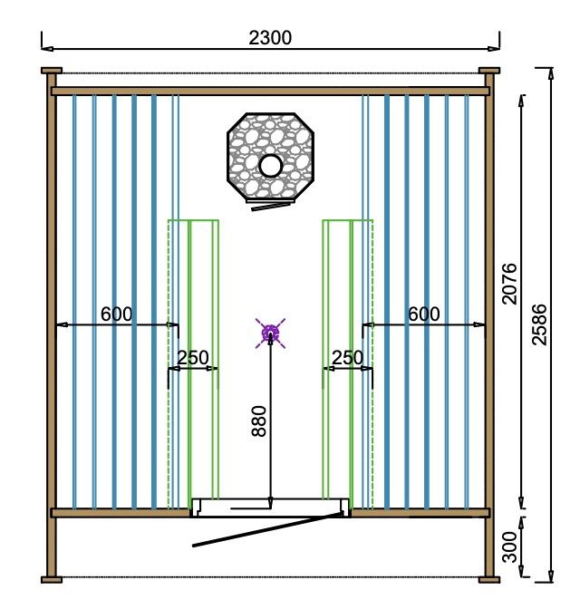 Im Innenraum laden zweistufige Saunabänke aus Erlenholz zum komfortablen Sitzen und Liegen ein. Das Holz ist besonders angenehm auf der Haut und ideal für hohe Temperaturen geeignet.