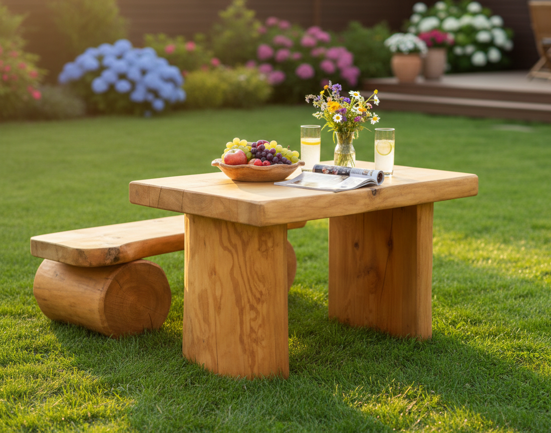 Rustikaler Gartentisch Kalletal aus massivem Lärchenholz
