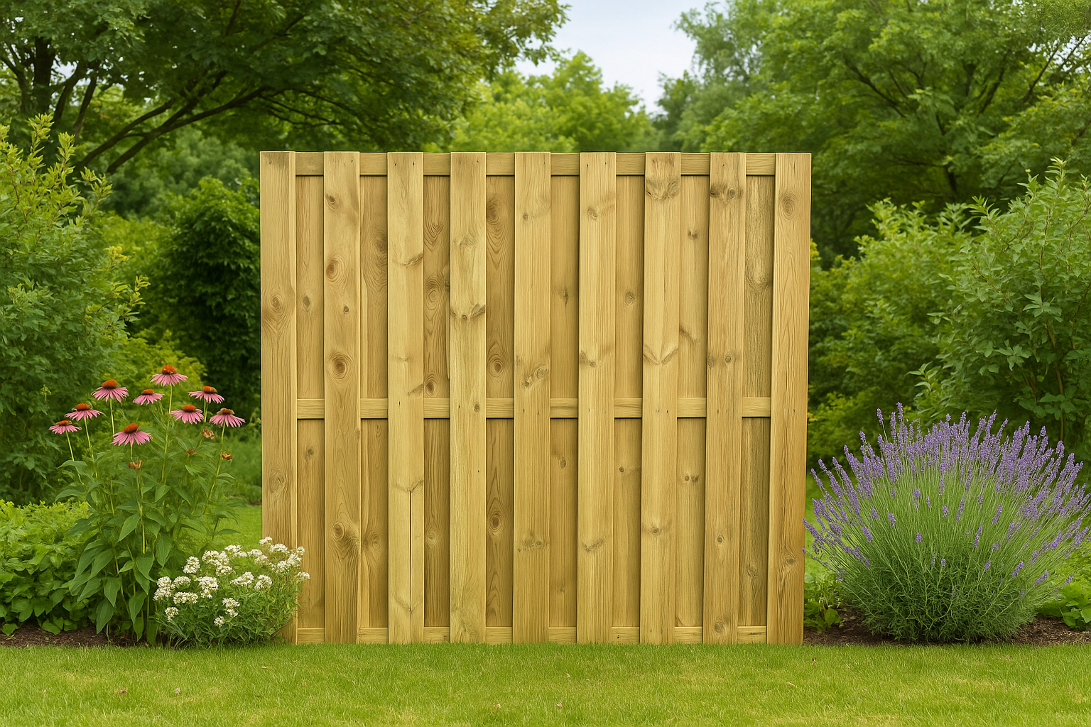 Die gerade Sichtblende „Cardiff“ ist ein zeitloses Zaunelement für einen geschützten und