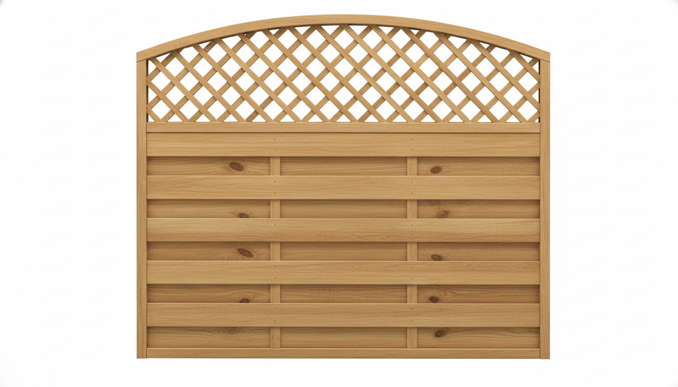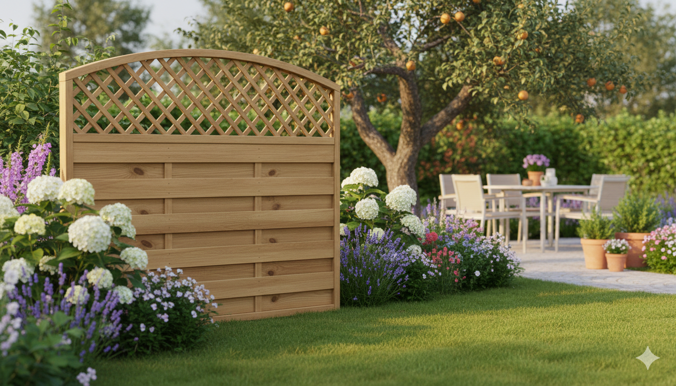 Rundbogen-Sichtblende aus grün imprägniertem Holz mit Gitter – robuster, bepflanzbarer Sichtschutz für Garten und Terrasse.