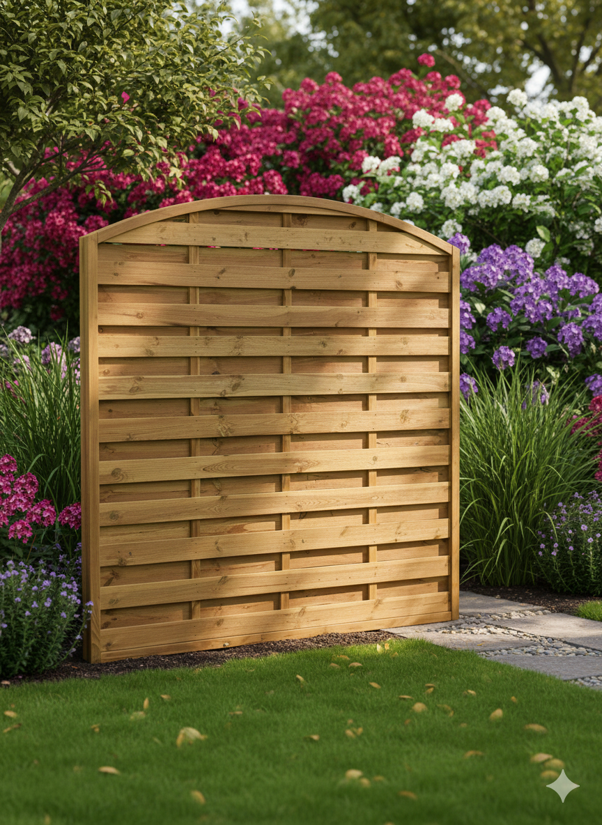 Dieses Sichtschutzelement mit klassischem Rundbogen sorgt für Privatsphäre und