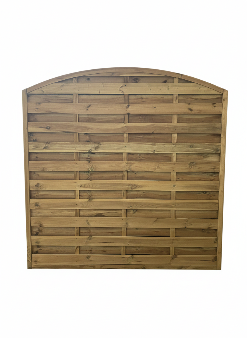 Robustes Rundbogen-Sichtschutzelement aus grün imprägniertem Holz, bietet zuverlässigen Sicht- und Windschutz im Garten.