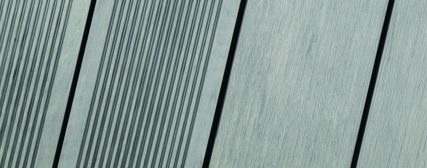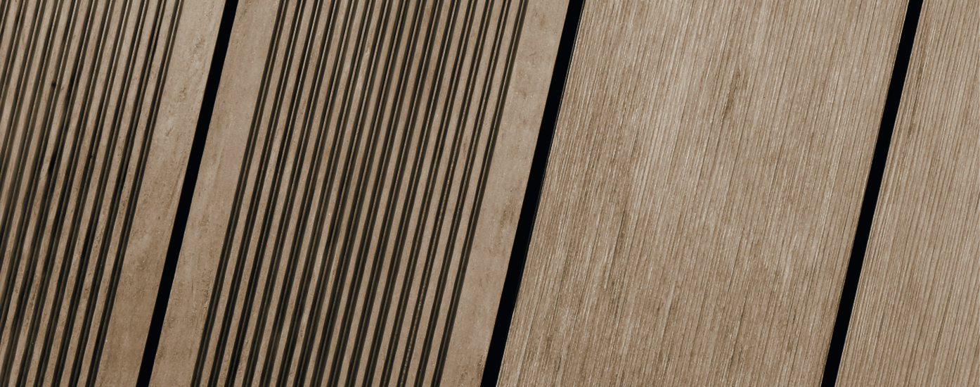 VivaDeck® WPC Vintage Massivprofil 20×146 mm, einseitig glatt & gebürstet, einseitig 14 Wellen. Robust und stilvoll.